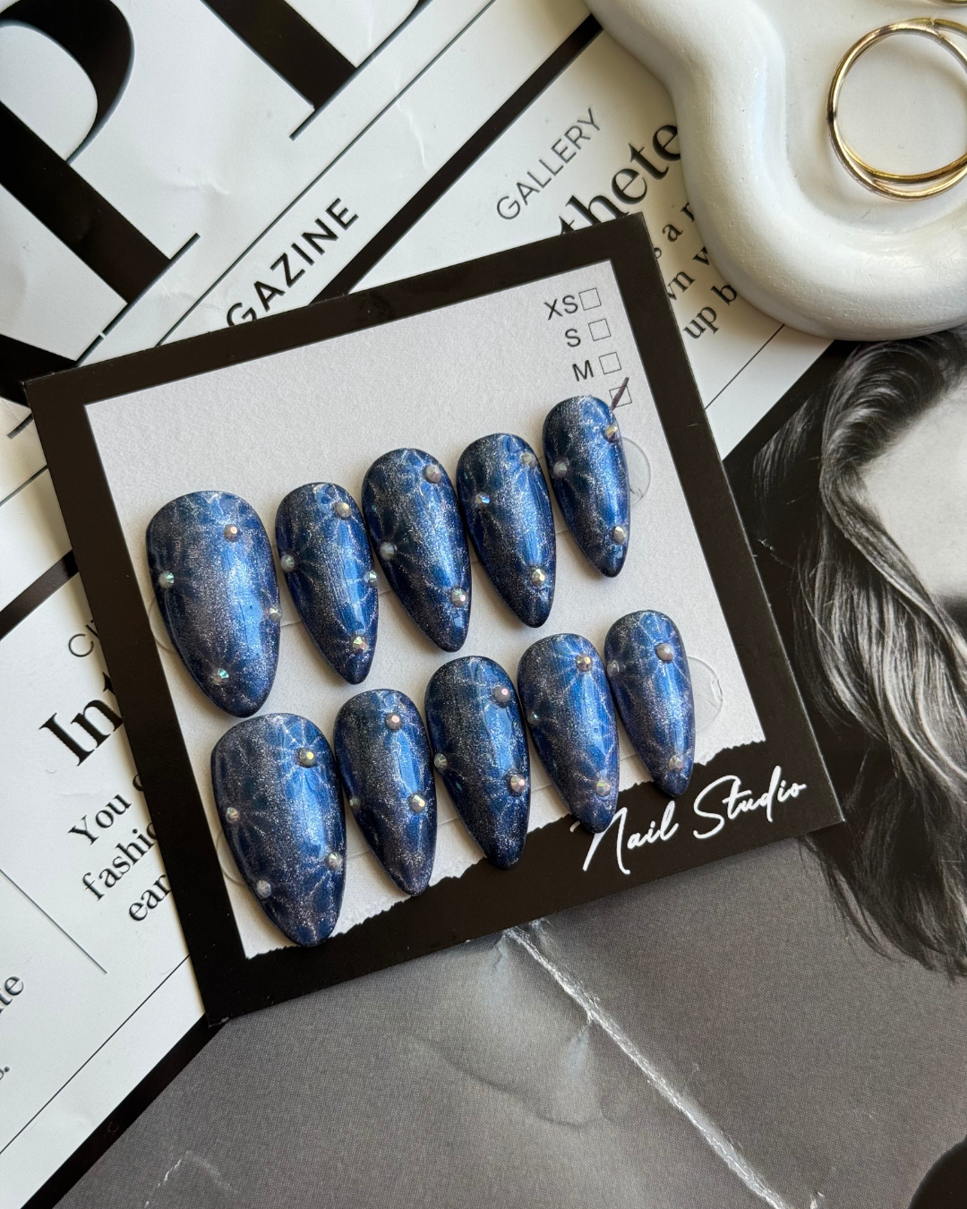 1. Applica la colla sulla press on dal lato interno o posiziona l'adesivo sull'unghia naturale